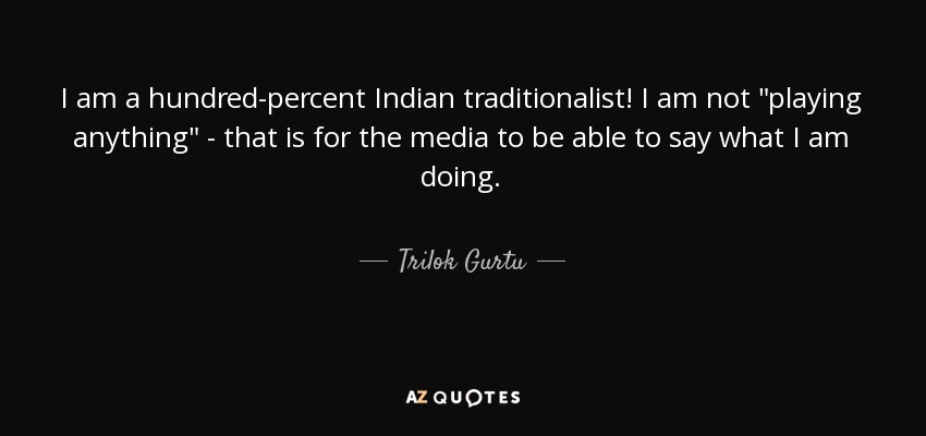 I am a hundred-percent Indian traditionalist! I am not "playing anything" - that is for the media to be able to say what I am doing.