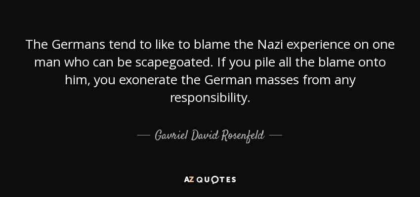 The Germans tend to like to blame the Nazi experience on one man who can be scapegoated. If you pile all the blame onto him, you exonerate the German masses from any responsibility.