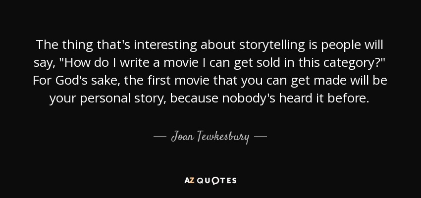 The thing that's interesting about storytelling is people will say, "How do I write a movie I can get sold in this category?" For God's sake, the first movie that you can get made will be your personal story, because nobody's heard it before.