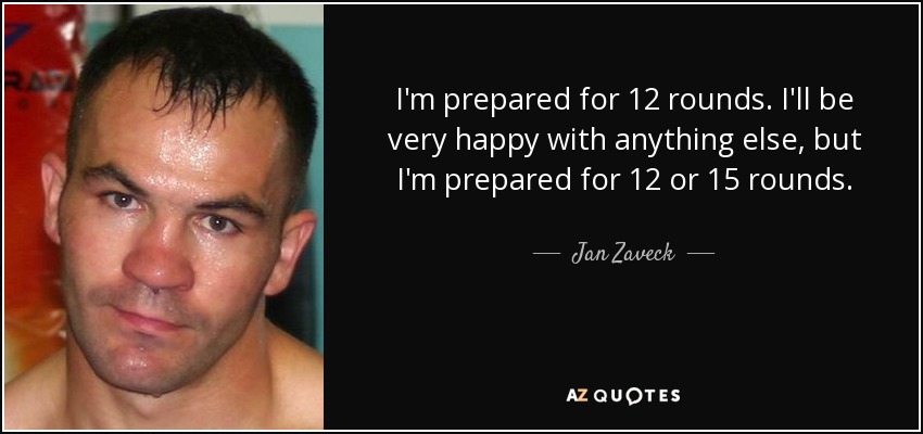 I'm prepared for 12 rounds. I'll be very happy with anything else, but I'm prepared for 12 or 15 rounds.