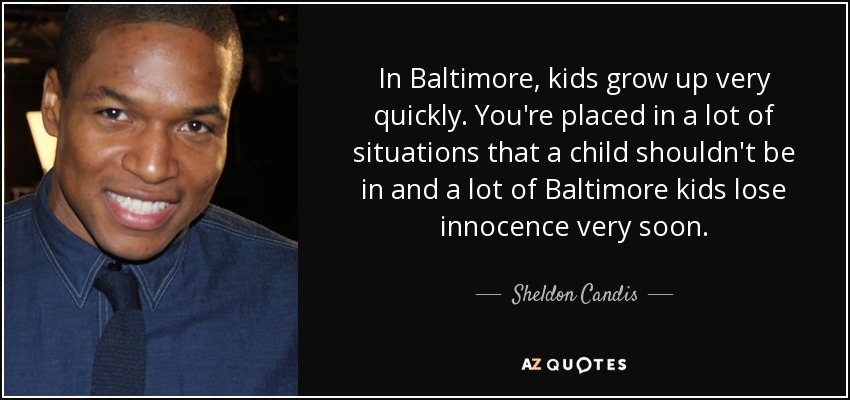 In Baltimore, kids grow up very quickly. You're placed in a lot of situations that a child shouldn't be in and a lot of Baltimore kids lose innocence very soon.