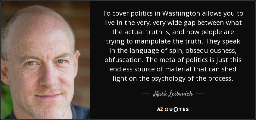 To cover politics in Washington allows you to live in the very, very wide gap between what the actual truth is, and how people are trying to manipulate the truth. They speak in the language of spin, obsequiousness, obfuscation. The meta of politics is just this endless source of material that can shed light on the psychology of the process.