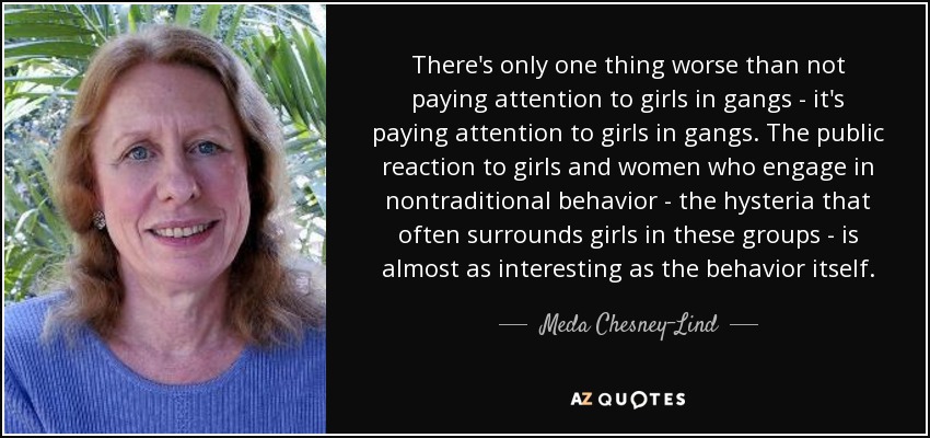 There's only one thing worse than not paying attention to girls in gangs - it's paying attention to girls in gangs. The public reaction to girls and women who engage in nontraditional behavior - the hysteria that often surrounds girls in these groups - is almost as interesting as the behavior itself.