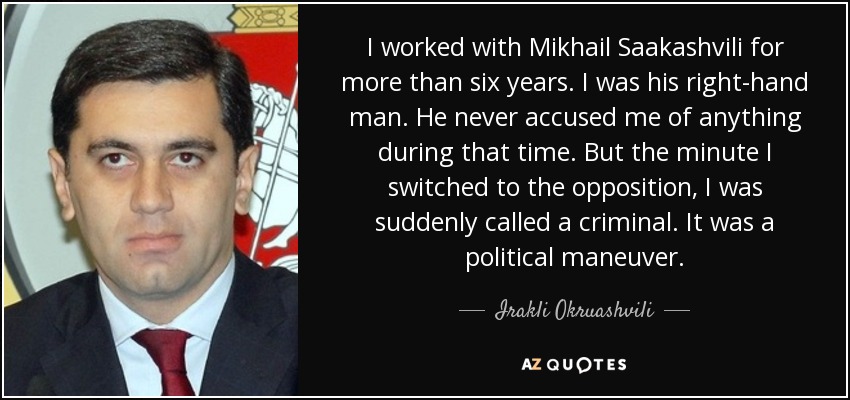 I worked with Mikhail Saakashvili for more than six years. I was his right-hand man. He never accused me of anything during that time. But the minute I switched to the opposition, I was suddenly called a criminal. It was a political maneuver.
