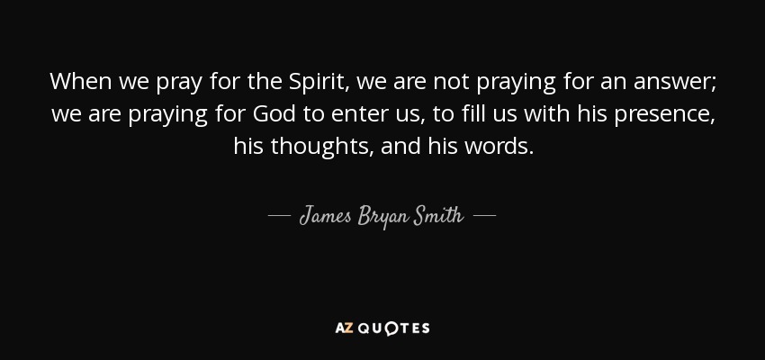 When we pray for the Spirit, we are not praying for an answer; we are praying for God to enter us, to fill us with his presence, his thoughts, and his words.