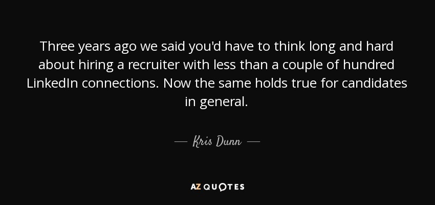 Three years ago we said you'd have to think long and hard about hiring a recruiter with less than a couple of hundred LinkedIn connections. Now the same holds true for candidates in general.