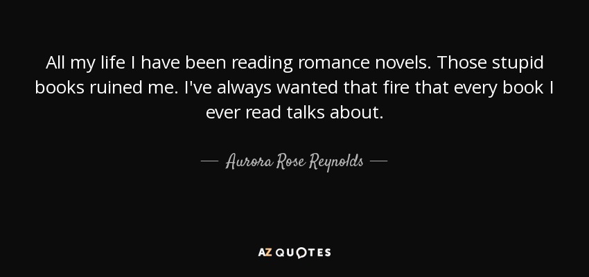 All my life I have been reading romance novels. Those stupid books ruined me. I've always wanted that fire that every book I ever read talks about.