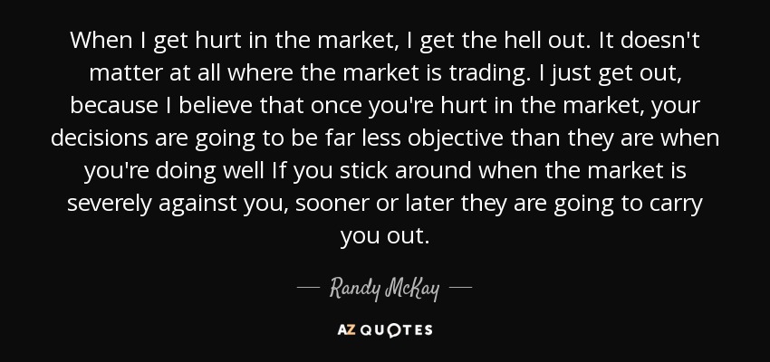 When I get hurt in the market, I get the hell out. It doesn't matter at all where the market is trading. I just get out, because I believe that once you're hurt in the market, your decisions are going to be far less objective than they are when you're doing well If you stick around when the market is severely against you, sooner or later they are going to carry you out.