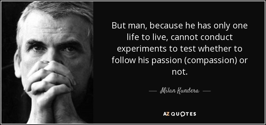 But man, because he has only one life to live, cannot conduct experiments to test whether to follow his passion (compassion) or not.