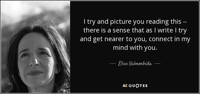I try and picture you reading this -- there is a sense that as I write I try and get nearer to you, connect in my mind with you.