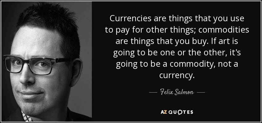 Currencies are things that you use to pay for other things; commodities are things that you buy. If art is going to be one or the other, it's going to be a commodity, not a currency.