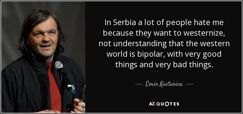 In Serbia a lot of people hate me because they want to westernize, not understanding that the western world is bipolar, with very good things and very bad things.
