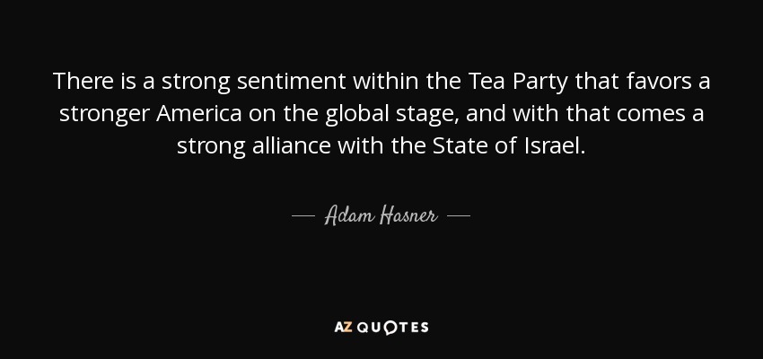 There is a strong sentiment within the Tea Party that favors a stronger America on the global stage, and with that comes a strong alliance with the State of Israel.