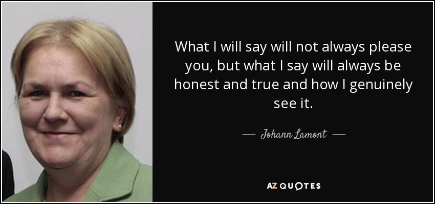 What I will say will not always please you, but what I say will always be honest and true and how I genuinely see it.