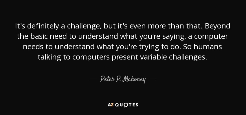 It's definitely a challenge, but it's even more than that. Beyond the basic need to understand what you're saying, a computer needs to understand what you're trying to do. So humans talking to computers present variable challenges.