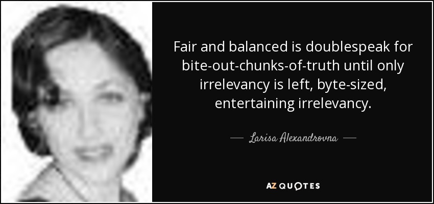 Fair and balanced is doublespeak for bite-out-chunks-of-truth until only irrelevancy is left, byte-sized, entertaining irrelevancy.