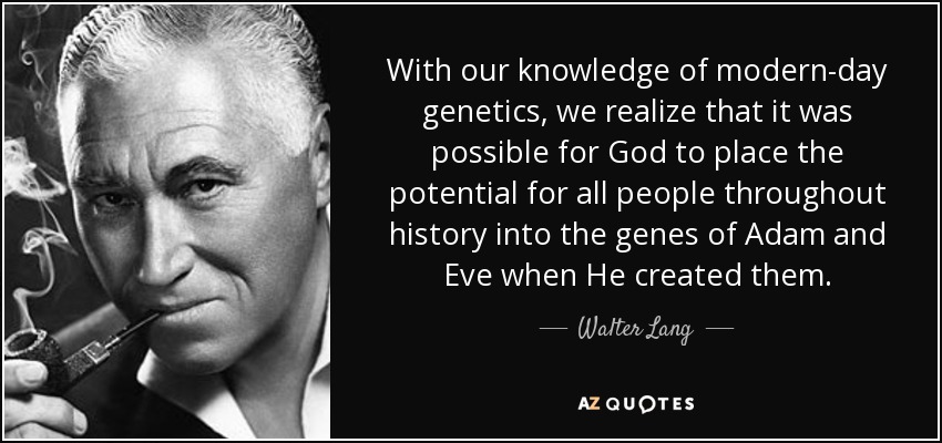With our knowledge of modern-day genetics, we realize that it was possible for God to place the potential for all people throughout history into the genes of Adam and Eve when He created them.