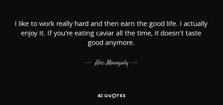 I like to work really hard and then earn the good life. I actually enjoy it. If you're eating caviar all the time, it doesn't taste good anymore.