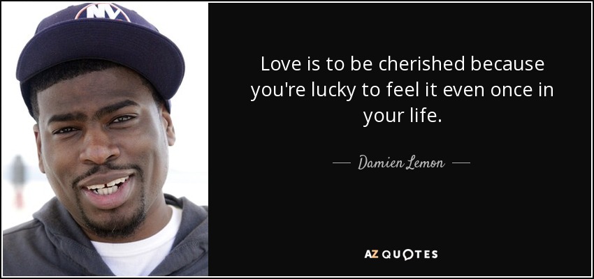 Love is to be cherished because you're lucky to feel it even once in your life.