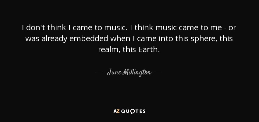 I don't think I came to music. I think music came to me - or was already embedded when I came into this sphere, this realm, this Earth.