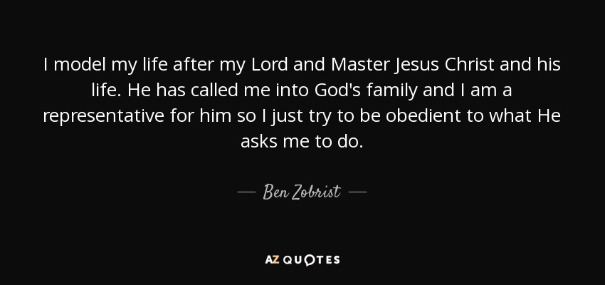 I model my life after my Lord and Master Jesus Christ and his life. He has called me into God's family and I am a representative for him so I just try to be obedient to what He asks me to do.