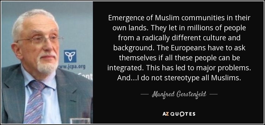 Emergence of Muslim communities in their own lands. They let in millions of people from a radically different culture and background. The Europeans have to ask themselves if all these people can be integrated. This has led to major problems. And...I do not stereotype all Muslims.