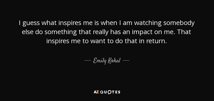 I guess what inspires me is when I am watching somebody else do something that really has an impact on me. That inspires me to want to do that in return.