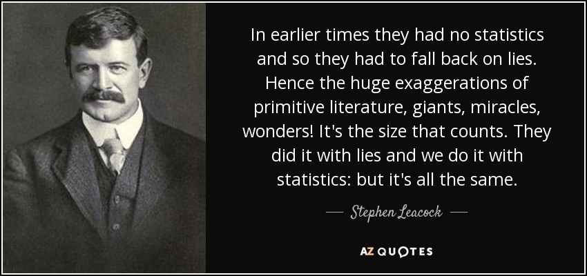 In earlier times they had no statistics and so they had to fall back on lies. Hence the huge exaggerations of primitive literature, giants, miracles, wonders! It's the size that counts. They did it with lies and we do it with statistics: but it's all the same.