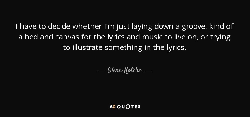 I have to decide whether I'm just laying down a groove, kind of a bed and canvas for the lyrics and music to live on, or trying to illustrate something in the lyrics.