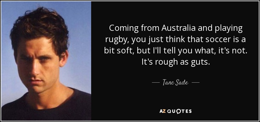 Coming from Australia and playing rugby, you just think that soccer is a bit soft, but I'll tell you what, it's not. It's rough as guts.