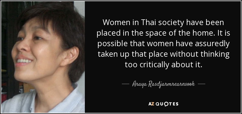 Women in Thai society have been placed in the space of the home. It is possible that women have assuredly taken up that place without thinking too critically about it.