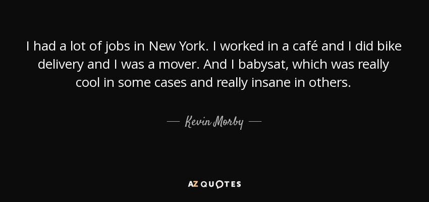 I had a lot of jobs in New York. I worked in a café and I did bike delivery and I was a mover. And I babysat, which was really cool in some cases and really insane in others.