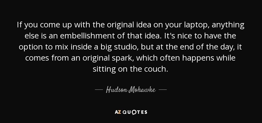 If you come up with the original idea on your laptop, anything else is an embellishment of that idea. It's nice to have the option to mix inside a big studio, but at the end of the day, it comes from an original spark, which often happens while sitting on the couch.