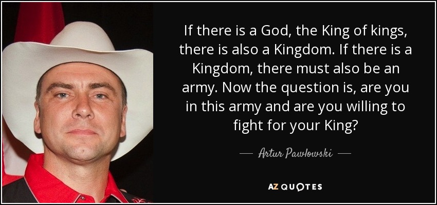 If there is a God, the King of kings, there is also a Kingdom. If there is a Kingdom, there must also be an army. Now the question is, are you in this army and are you willing to fight for your King?