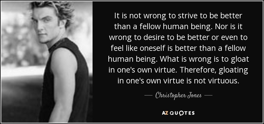 It is not wrong to strive to be better than a fellow human being. Nor is it wrong to desire to be better or even to feel like oneself is better than a fellow human being. What is wrong is to gloat in one's own virtue. Therefore, gloating in one's own virtue is not virtuous.