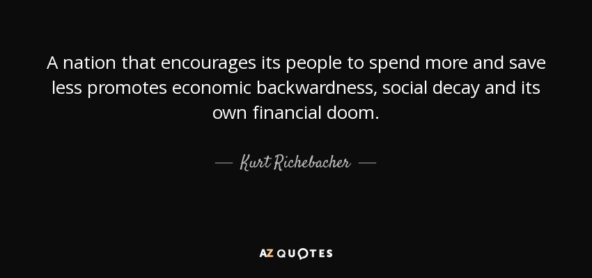 A nation that encourages its people to spend more and save less promotes economic backwardness, social decay and its own financial doom.