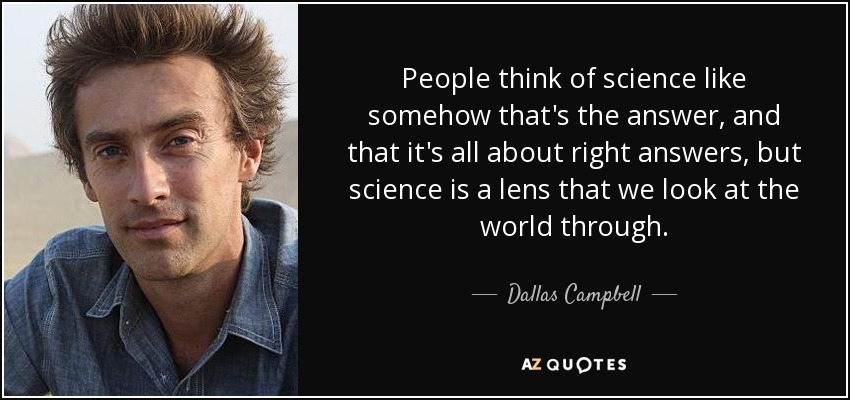 People think of science like somehow that's the answer, and that it's all about right answers, but science is a lens that we look at the world through.