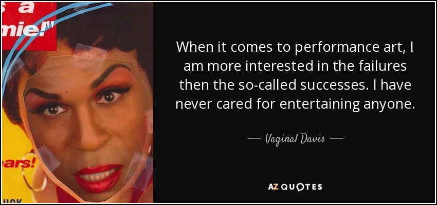 When it comes to performance art, I am more interested in the failures then the so-called successes. I have never cared for entertaining anyone.