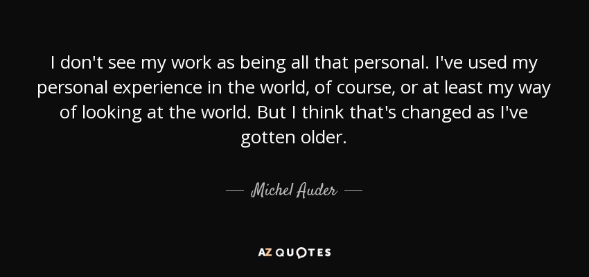 I don't see my work as being all that personal. I've used my personal experience in the world, of course, or at least my way of looking at the world. But I think that's changed as I've gotten older.