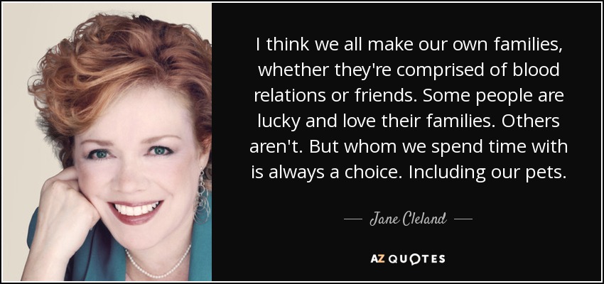 I think we all make our own families, whether they're comprised of blood relations or friends. Some people are lucky and love their families. Others aren't. But whom we spend time with is always a choice. Including our pets.