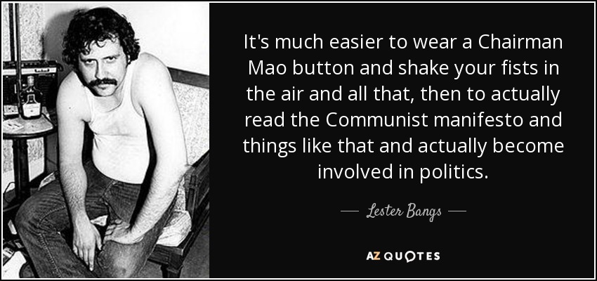It's much easier to wear a Chairman Mao button and shake your fists in the air and all that, then to actually read the Communist manifesto and things like that and actually become involved in politics.