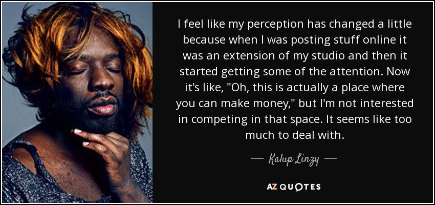 I feel like my perception has changed a little because when I was posting stuff online it was an extension of my studio and then it started getting some of the attention. Now it's like, "Oh, this is actually a place where you can make money," but I'm not interested in competing in that space. It seems like too much to deal with.