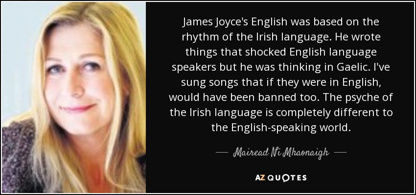 James Joyce's English was based on the rhythm of the Irish language. He wrote things that shocked English language speakers but he was thinking in Gaelic. I've sung songs that if they were in English, would have been banned too. The psyche of the Irish language is completely different to the English-speaking world.