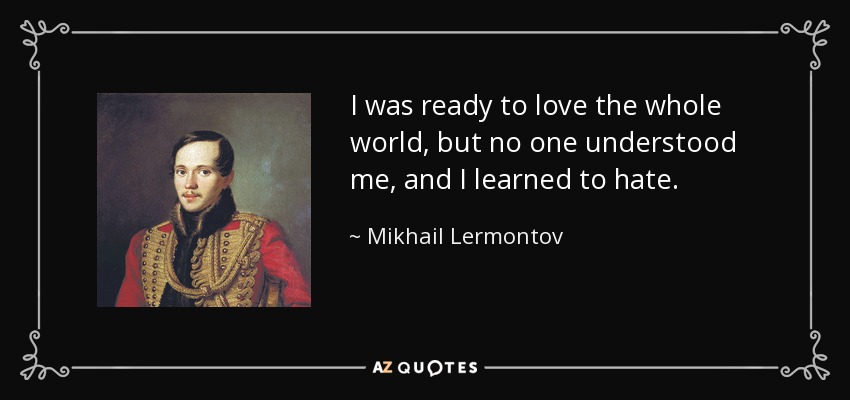 I was ready to love the whole world, but no one understood me, and I learned to hate.
