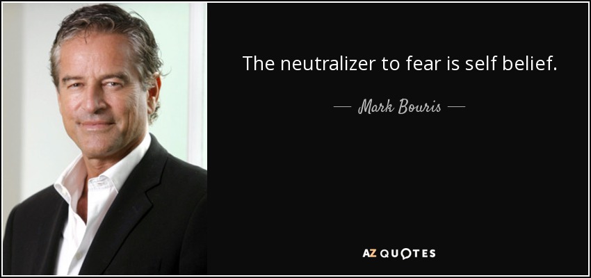 Self belief will always push fear away, but you need to always practice self belief otherwise fear will come back and tap you on the shoulder.