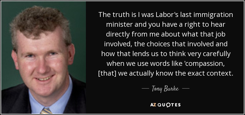 The truth is I was Labor's last immigration minister and you have a right to hear directly from me about what that job involved, the choices that involved and how that lends us to think very carefully when we use words like 'compassion, [that] we actually know the exact context.