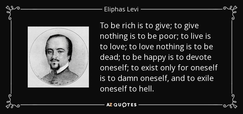 To be rich is to give; to give nothing is to be poor; to live is to love; to love nothing is to be dead; to be happy is to devote oneself; to exist only for oneself is to damn oneself, and to exile oneself to hell.