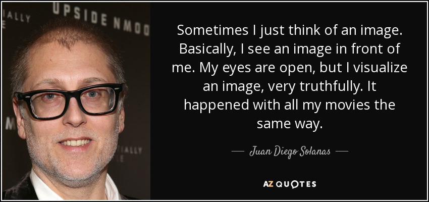 Sometimes I just think of an image. Basically, I see an image in front of me. My eyes are open, but I visualize an image, very truthfully. It happened with all my movies the same way.