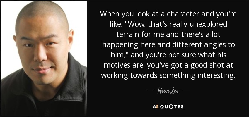When you look at a character and you're like, "Wow, that's really unexplored terrain for me and there's a lot happening here and different angles to him," and you're not sure what his motives are, you've got a good shot at working towards something interesting.