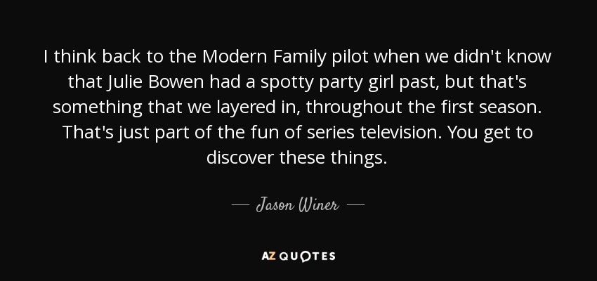 I think back to the Modern Family pilot when we didn't know that Julie Bowen had a spotty party girl past, but that's something that we layered in, throughout the first season. That's just part of the fun of series television. You get to discover these things.
